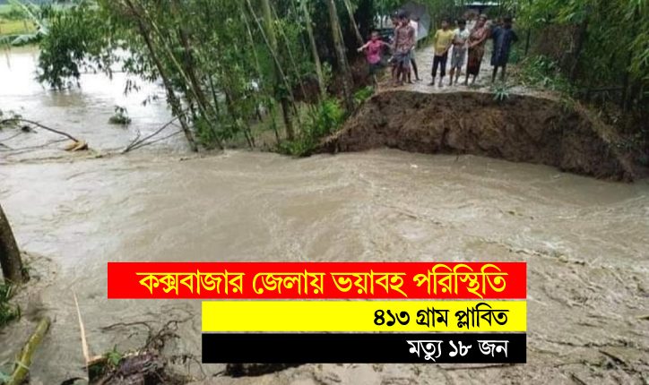 কক্সবাজার জেলায় ভারি বর্ষণে বন্যা পরিস্থিতির অবনতি ঘটেছে। পাহাড়ধসের পাশাপাশি নিম্নাঞ্চলগুলো প্লাবিত হয়েছে। অনেক স্থানে সড়ক যোগাযোগ বিচ্ছিন্ন হয়ে আছে। পানিবন্দি হয়ে পড়েছে জেলার প্রায় দুই লাখ মানুষ। বন্যার পানিতে ক্ষতিগ্রস্ত হয়েছে ফসলি জমি ও খেতখামার।