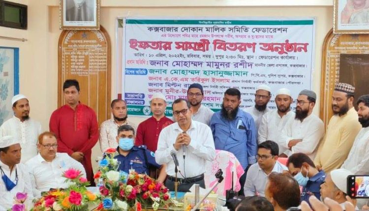 রবিবার (১০ এপ্রিল) বিকালে কক্সবাজার দোকান মালিক সমিতি ফেডারেশনের ইফতার সামগ্রী বিতরণ অনুষ্ঠানে প্রধান অতিথির বক্তব্যে জেলা প্রশাসক মোঃ মামুনুর রশীদ এসব কথা বলেছেন।