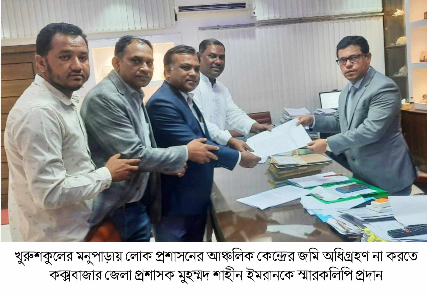 উদ্বিগ্ন জনগণ বুধবার (২৭ ডিসেম্বর) জেলা প্রশাসক মুহম্মদ শাহীন ইমরানকে স্মারকলিপি দিয়েছে। এ সময় স্থানীয় চেয়ারম্যান শাহজাহান সিদ্দিকী, সাবেক চেয়ারম্যান জসিম উদ্দিন উপস্থিত ছিলেন।