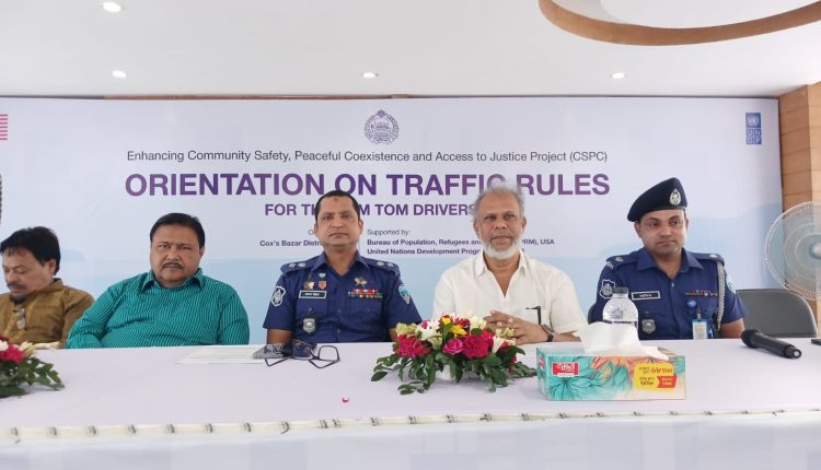 আন্তর্জাতিক এনজিও সংস্থা ইউএনডিপির সহযোগিতায় ৪ হাজার টমটম (ইজিবাইক) চালককে প্রশিক্ষণ দিচ্ছে কক্সবাজার জেলা পুলিশ। পর্যটন নগরী কক্সবাজারকে নিরাপদ ট্রাফিক ব্যবস্থা উপহার দিতে এই প্রশিক্ষণের আয়োজন করা হয়েছে। মঙ্গলবার (০৫ নভেম্বর) সকালে কক্সবাজার পুলিশ লাইনস্ এ “টমটম চালকদের জন্য ট্রাফিক নিয়মের উপর ওরিয়েন্টেশন” শিরোনামে সামাজিক নিরাপত্তা, শান্তিপূর্ণ সহাবস্থান এবং ন্যায়বিচারে অ্যাক্সেস বৃদ্ধি করা প্রকল্পের আওতায় ২শত টমটম চালককে প্রশিক্ষণের মাধ্যমে এই কার্যক্রমের উদ্বোধন করেন পুলিশ সুপার মুহাম্মদ রহমত উল্লাহ।